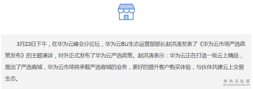 【摘要】 3月23日下午,在华为云峰会分论坛,华为云BU生态运营部部长赵洪涛发表了《华为云市场严选政策发布》的主题演讲,宣布了华为云严选政策正式对外发布。赵洪涛表示:华为云正在打造一批云上精品,推出了严选商城,华为云市场将承载严选商城的业务,更好的提升客户购买体验,与伙伴共建云上交易生态。