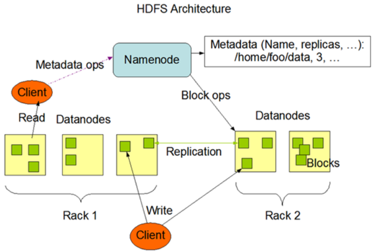 对于block,每一个block会在多个datanode上存储多份副本,默认是3份。Rack 是指机柜的意思,一个block的三个副本通常会保存到两个或者两个以上的机柜中(当然是机柜中的服务器),这样做的目的是做防灾容错,因为发生一个机柜掉电或者一个机柜的交换机挂了的概率还是蛮高的。这样既保证了可以使各任务就近读取缩短处理时间,又有很好的数据备份安全,唯一有些缺憾的是,备份数量过多的话,会拉长数据balance的时间。