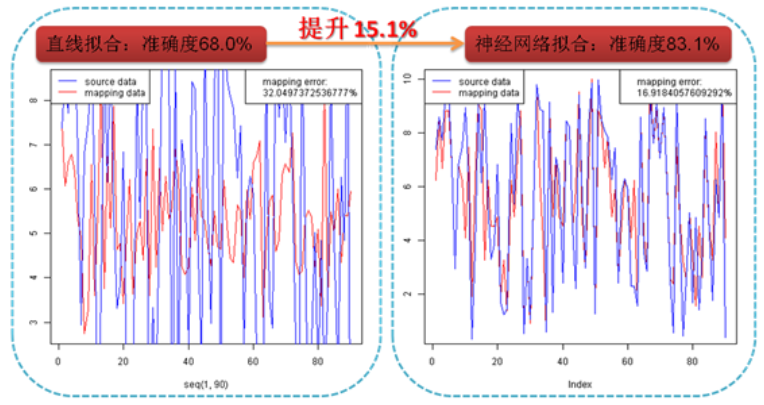 我们当时手里有一套比较原始的算法,采用的是线性拟合,由于数据实在太复杂,最后出来的结果非常不令人满意。于是Dr.P带领我们给它换了一个在我看来很高级的算法——神经网络算法。换了算法之后果然不一样,当然其中过程之艰辛也就不多说了,我们的新算法将精度提升15%+。