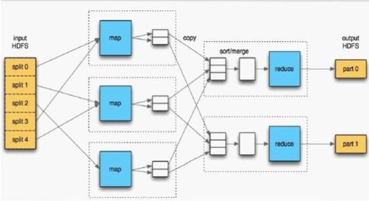 如果把HDFS和MapReduce结合起来看,内部工作原理就是下面这张图,浅显易懂:
