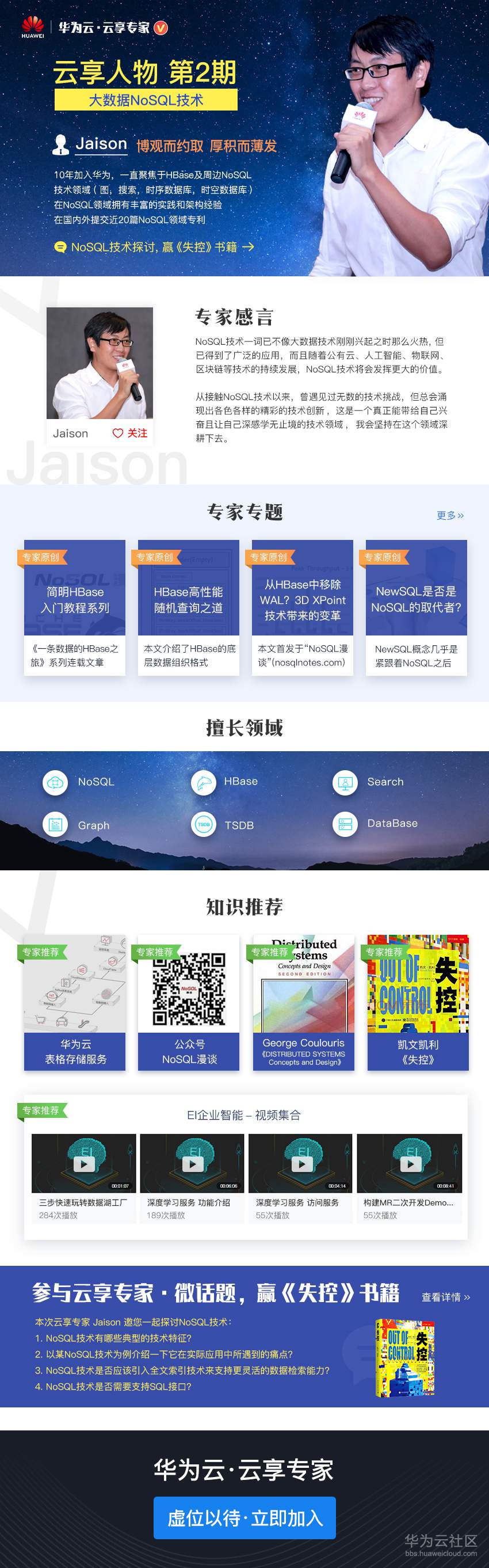【摘要】 【云享人物】第2期:Jaison与您探讨NoSQL技术。