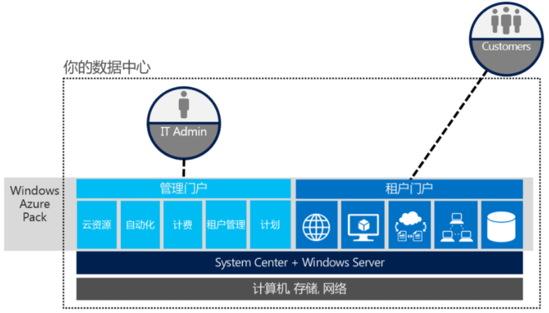 适用在Windows Server上的Windows Azure Pack是向微软(以下用MS代替)客户提供的一组可安装到数据库中心的Windows Azure技术,而且免费。MS建议运行于Windows Server 2012 R2和System Center 2012 R2。通过使用 Windows Azure Pack,我们可以提供与公共Windows Azure(现在叫Microsoft Azure)相一致的丰富的自助式多租户云体验。