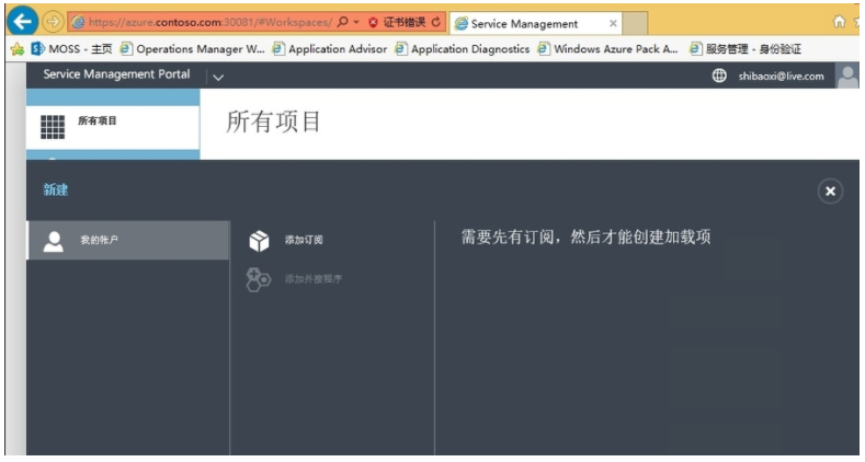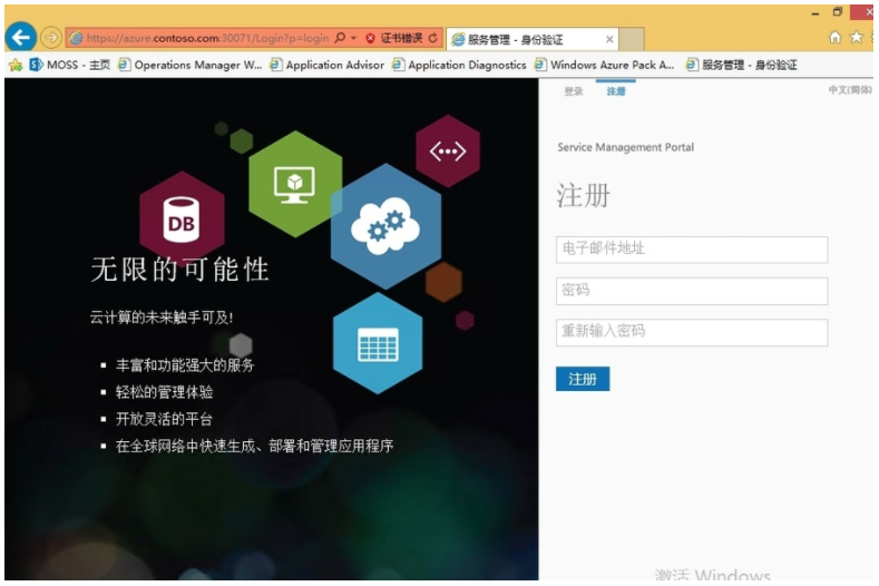 a.登录windows客户端,打开IE浏览器,输入搭建好的Azure Pack门户地址
