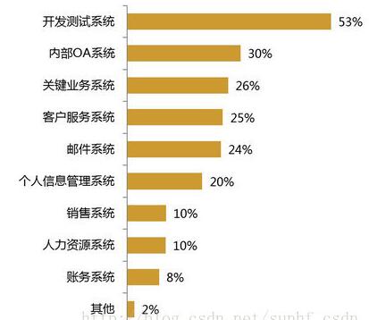 2016 年度 • 中国软件开发者白皮书 企业部署在云服务上的业务分布(调查项为多选)
