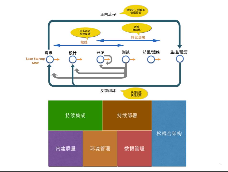 如果我们打开软件交付的过程来看,其实发现过去很多方法 论的提出,都与缩短交付周期有着密切的联系。从需求阶段最经常提的概念叫 MVP,所谓「MVP」是指我们定义需求的时候,先来分析最小、最有价值的需求,将这部分需求尽快上线,来满足用户的期望或者做试验,获取反馈之后再来进行改进,所以是从整体上缩短交付周期的。