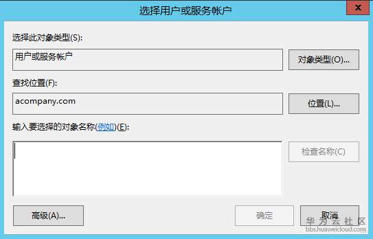 在“选择组”窗口中,选择对象类型为“组”,并在对象名称中输入由AD域创建的用户组名称,此处示例为“ADFSAdmin”,单击“确定”。