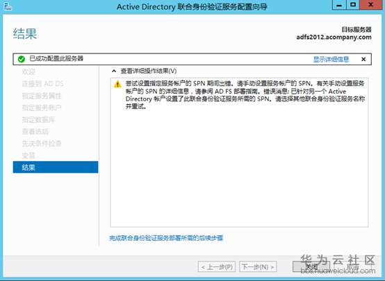 安装完成后,单击下图中的红框,开始ADFS的配置。