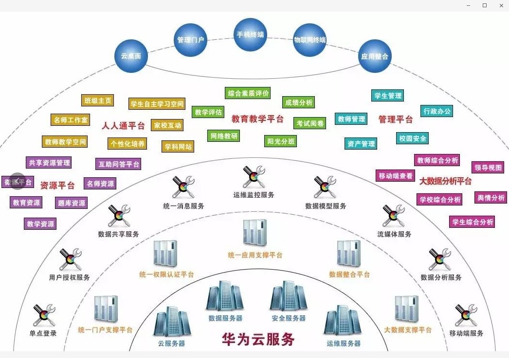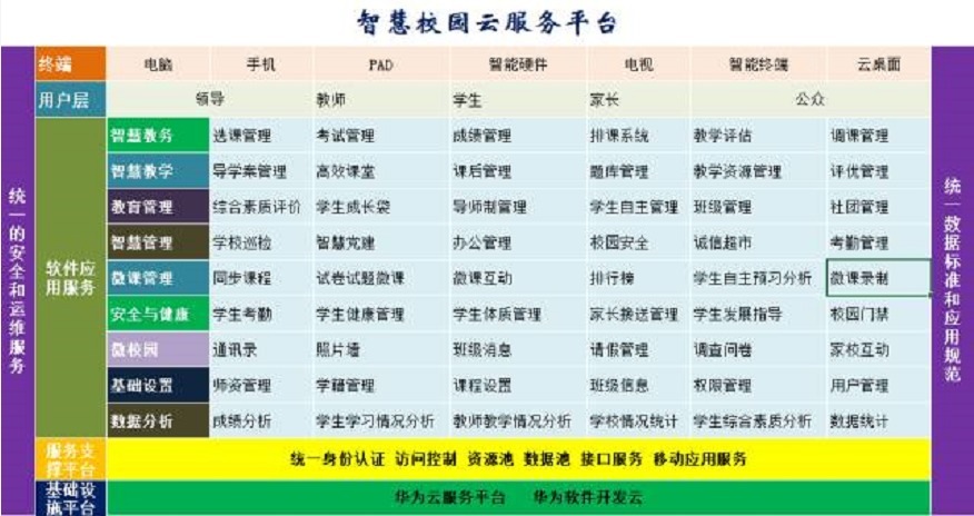 智慧校园服务平台,提供9个方面50+系统全面支撑校园信息化的升级,以“学习方式的根本转变”为核心,营造一个开放、主动和教育者真正参与学习设计的教育环境,为师生、家长和学生之间的互动提供交流平台。