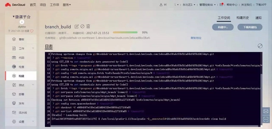 盈科使用DevCloud的构建功能