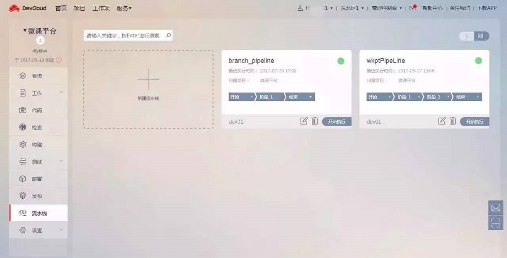 盈科使用DevCloud流水线功能