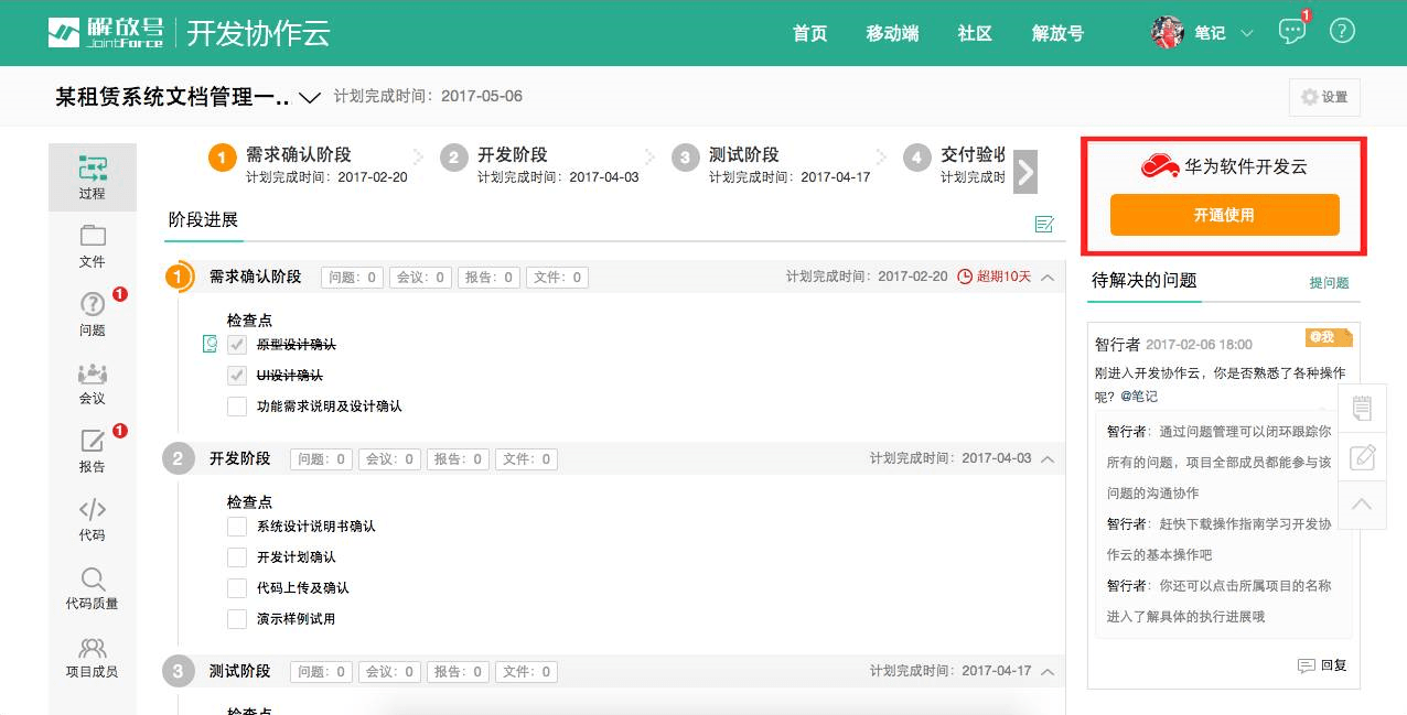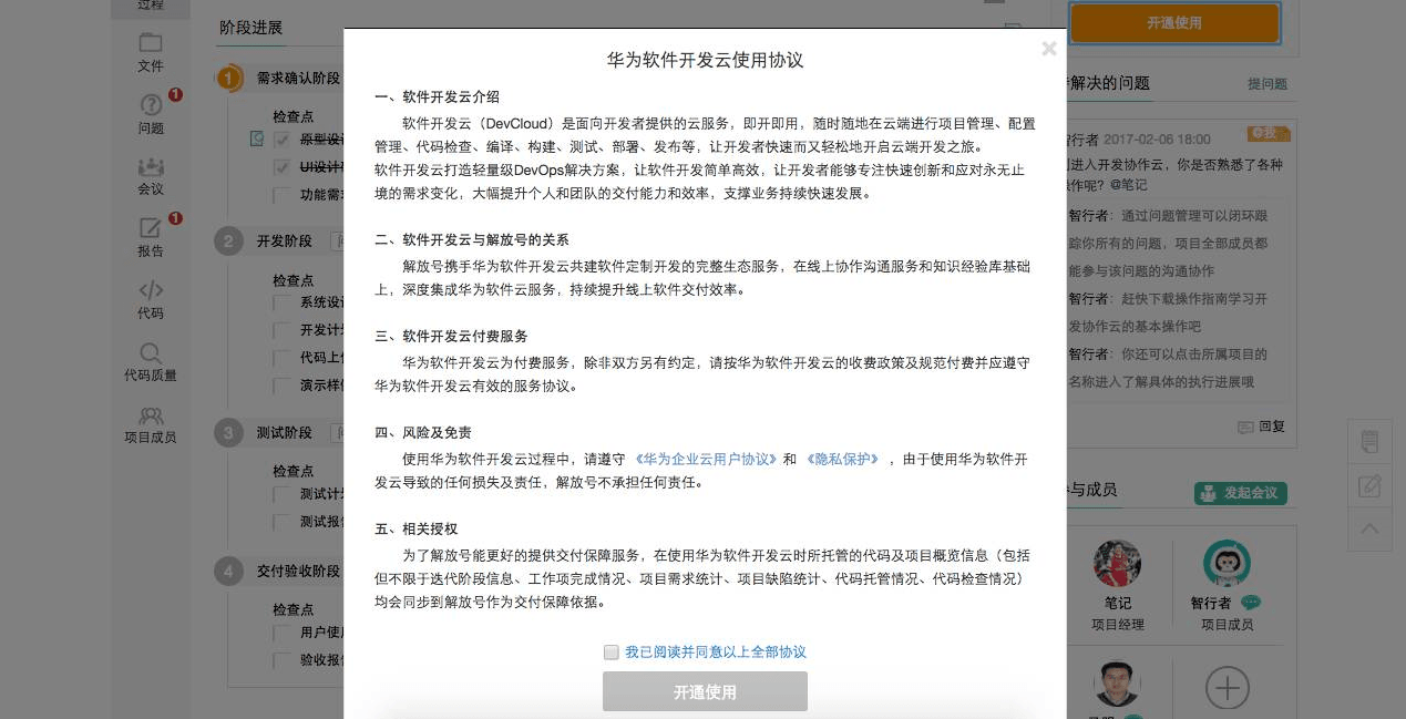 解放号与华为软件开发云携手后,为解放号用户提供全生命周期开发支撑服务。解放号所有用户,不管是订单交易用户还是社区项目开发者,都可以在解放号快速开通使用华为软件开发云服务。