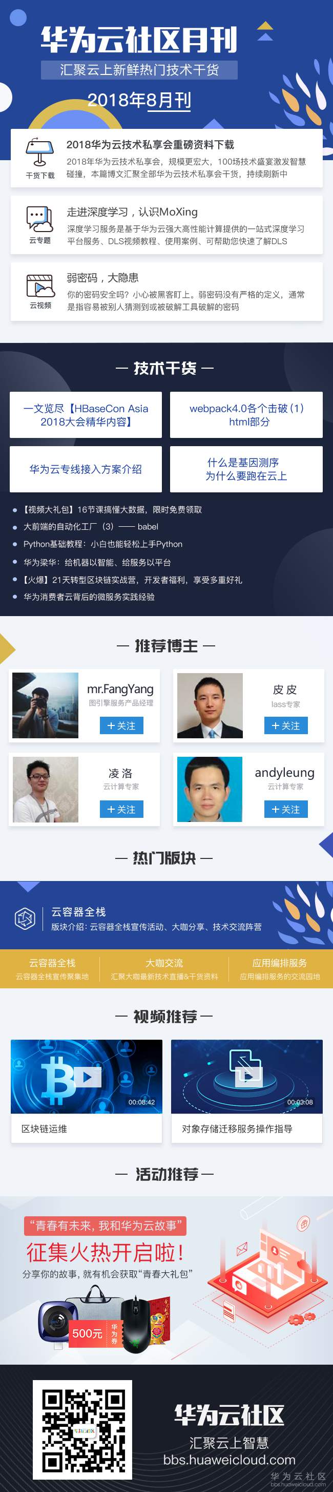 【华为云社区18年 8月刊】本期推荐:华为云技术私享会现场资料免费下载,webpack4.0各个击破