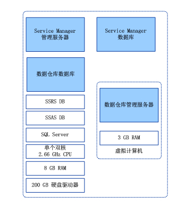 本文是一台计算机上安装 System Center 2012 Service Manager SP1,请在该计算机上安装 Service Manager 管理服务器、数据库和控制台; 然后在同一台计算机上的虚拟机上安装数据仓库。