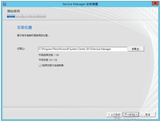 3、在“安装位置”页上,确认有足够的可用磁盘空间,然后单击“下一步”。 如有必要,单击“浏览”以更改 Service Manager 数据仓库管理服务器将安装到的位置。