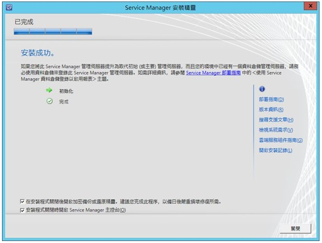 11、在“安装程序成功完成”页上,我们建议将“打开加密备份或还原向导”保留选中状态,再单击“关闭”。有关备份加密密钥的详细信息,请参阅通过备份加密密钥来完成部署。