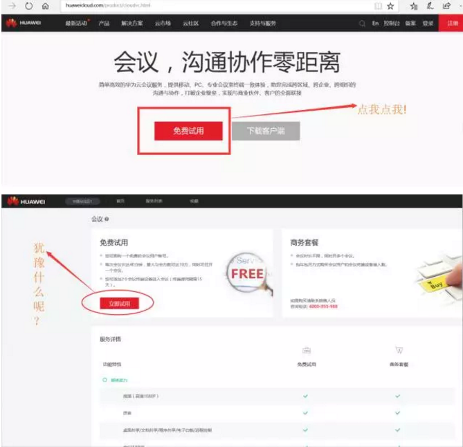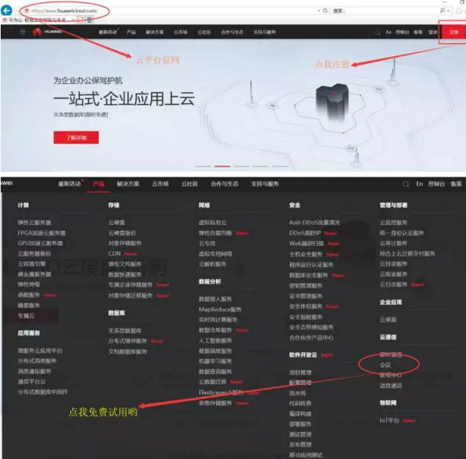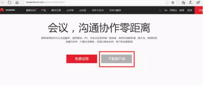 ▼ 登录网址www.hwclouds.com,注册一个账号,点击产品-云通信-会议,然后就找到下载客户端啦