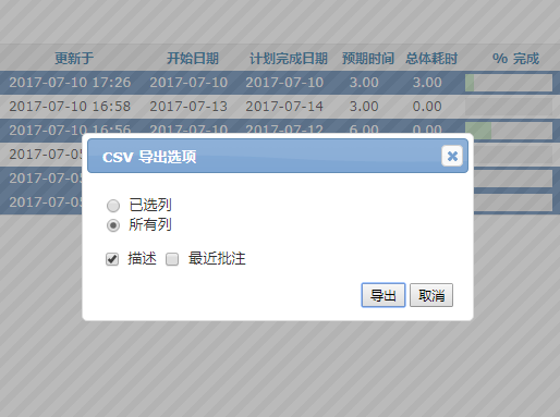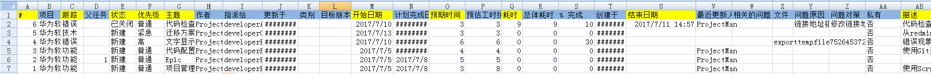 Redmine导出数据关键值如下