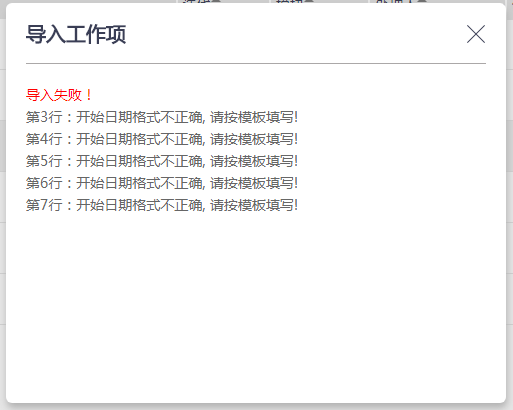 6、如果导入有错误,请根据提示修改