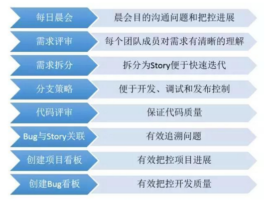首先我们是找到解决问题的方法,其中主要结合了敏捷开发模式的理念,列举如下图所示: