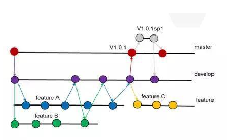 版本发布上线后,如果发现Bug,开发团队需要紧急修复,首先从V1.0.1标签处拉取一个V1.0.1SP1的补丁分支,然后在该分支上修复代码,测试通过后再合入Master分支,并打上V1.0.1SP1的标签。同时,为了保证补丁版本修改的代码及时合入到开发环境,开发团队需要将V1.0.1SP1分支合入到Develop分支。