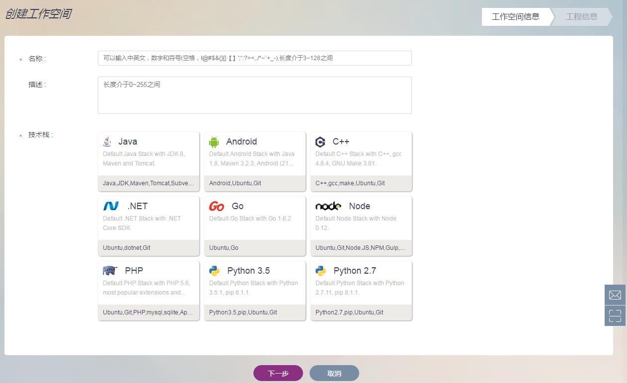 创建工作空间,主流技术栈支持的妥妥的! 工作空间的搭建保证了环境的一致性,代码和环境分离,随时重新部署环境。