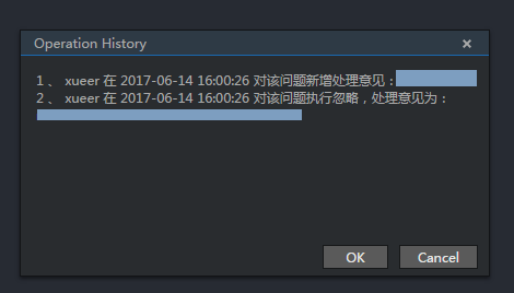 7、单击历史按钮,可查看缺陷的操作历史,包括处理意见、执行忽略记录等。