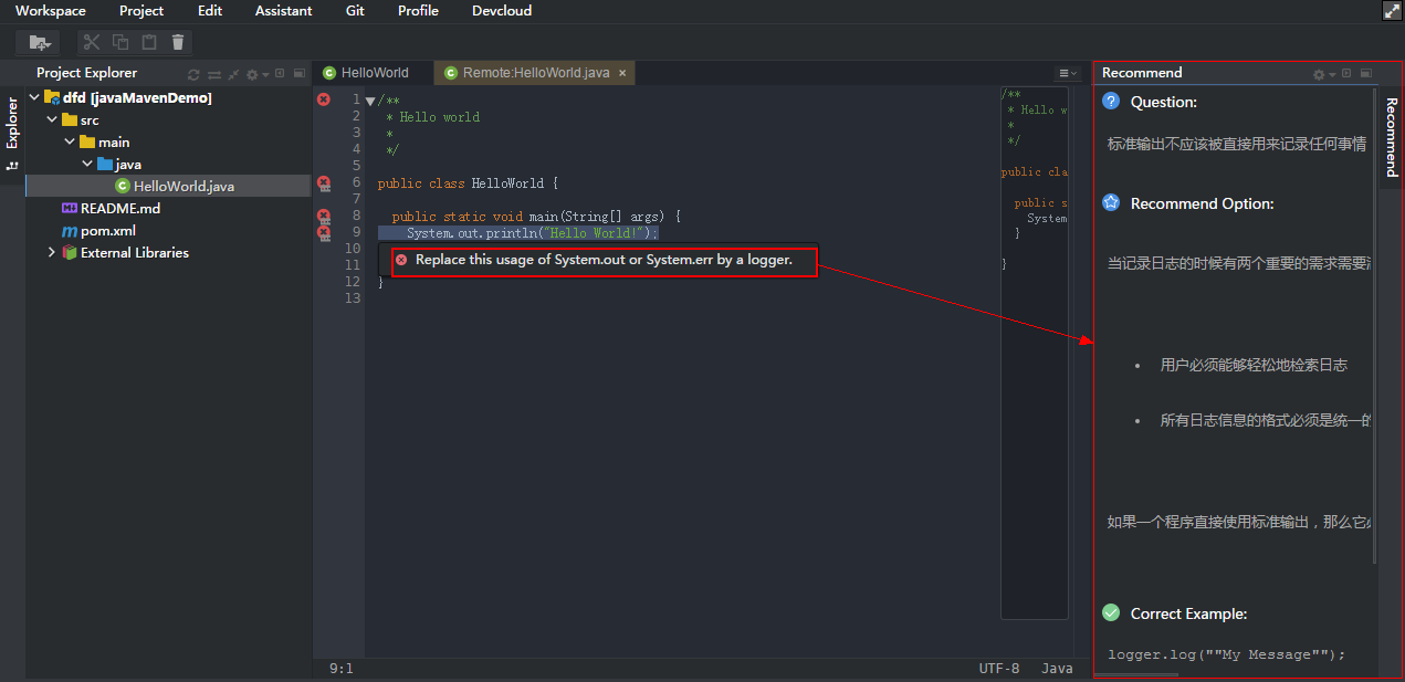 CloudIDE还可以配合DevCloud代码检查功能,帮你找到并修改代码中的缺陷(代码检查功能详见https://www.hwclouds.com/product/codecheck.html )