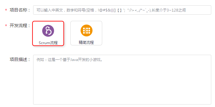 结合华为软件开发云,他们提供了两种项目创建方法:Scrum和Scrum精简,可以结合自己的不同习惯,选择合适自己团队的方法,这点还是不错的。