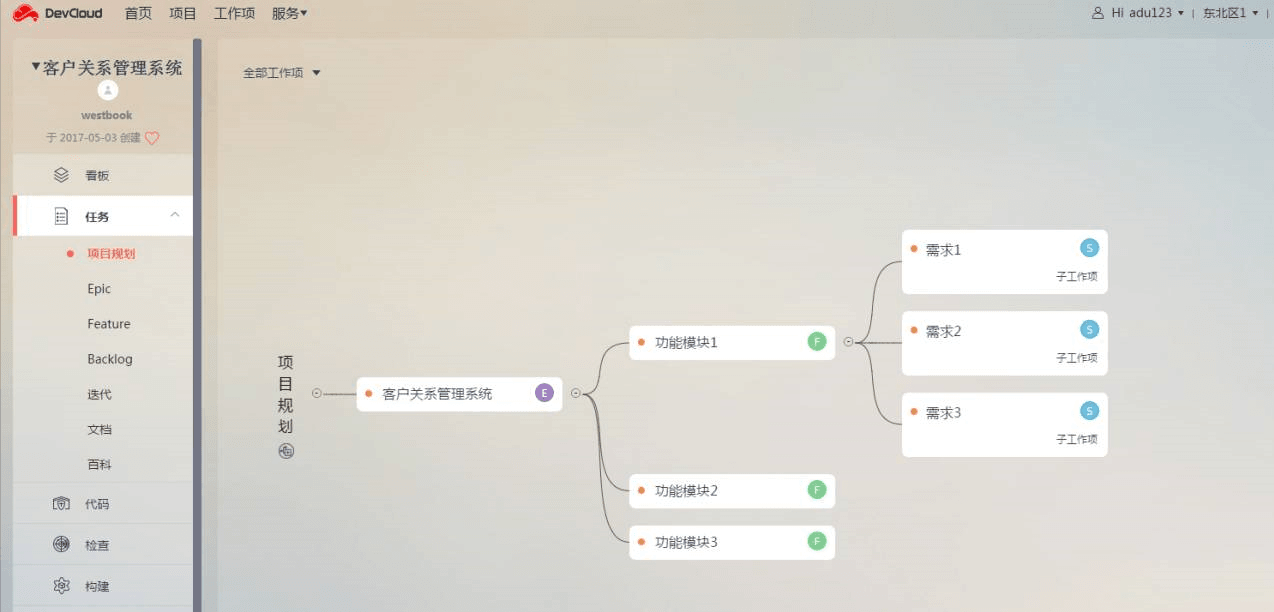 华为DevCloud把项目规划以思维导图形式展示