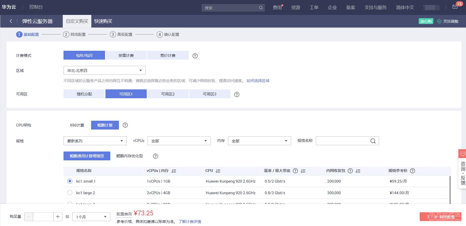 3.当然,如果无法领取试用,或者不符合领取规则的用户,则可以直接购买鲲鹏弹性云服务器进行体验