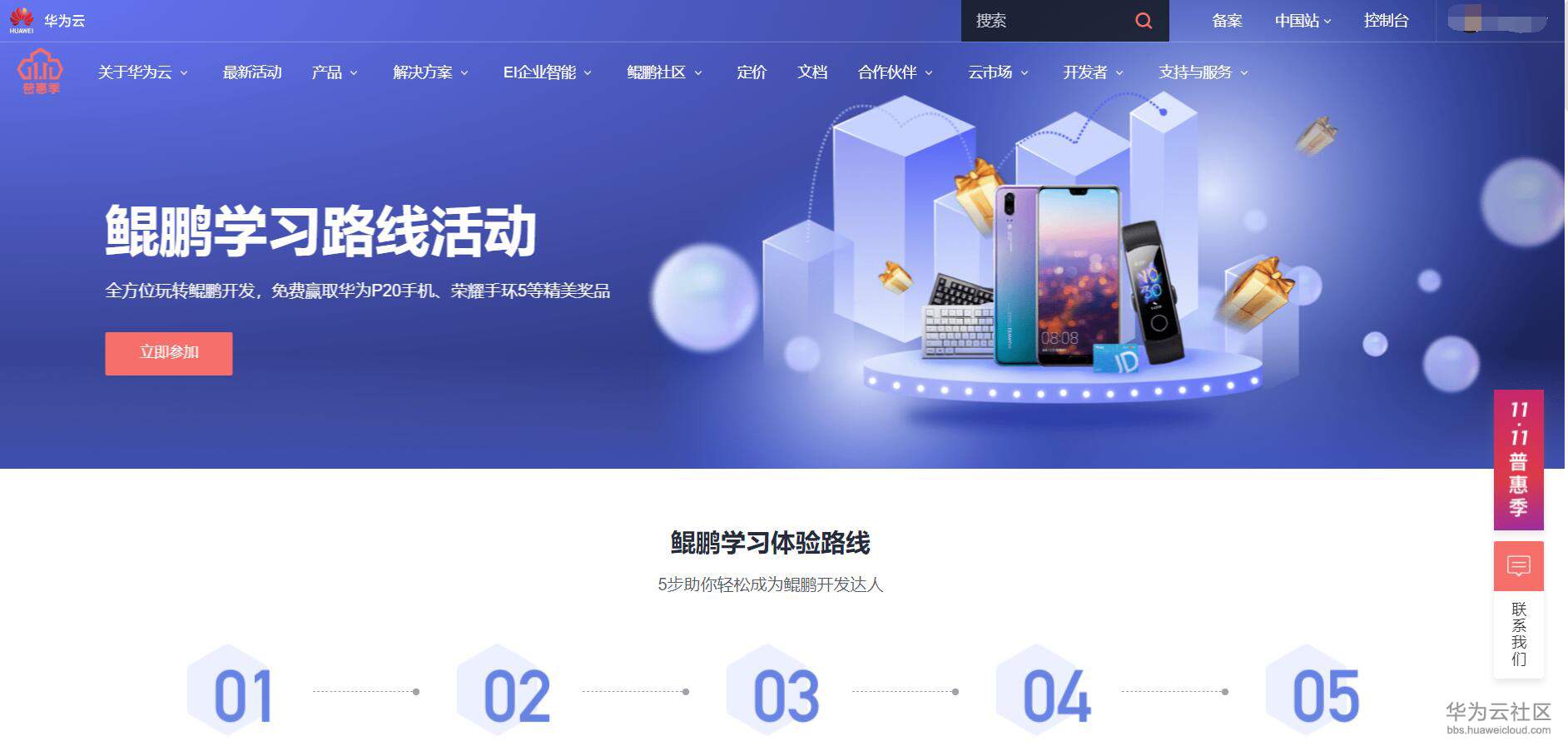 首先得有一台鲲鹏云服务器,这个相对来说比较简单,通过华为云官网可以进行免费领用或者在线购买,具体操作如下: