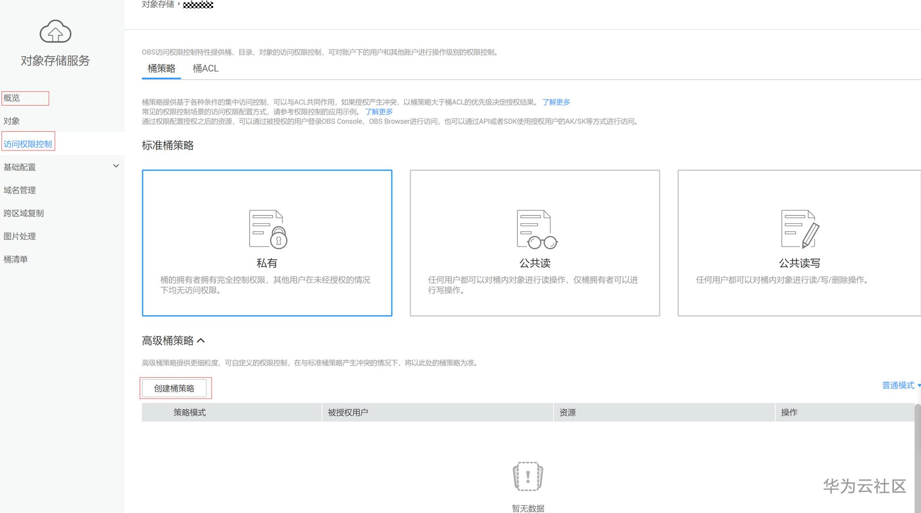 说明: 为了确保您的数据安全,不推荐配置为公共读或公共读写。