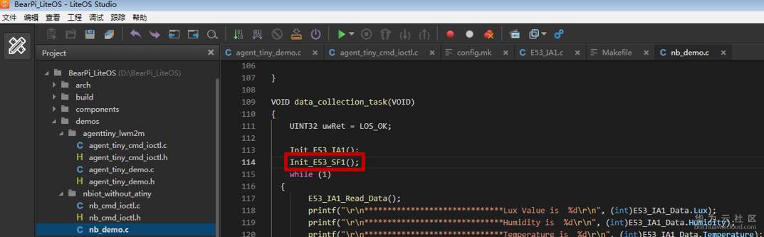 在“nb_demo.c”的数据收集任务中,添加初始化烟感传感器的代码;