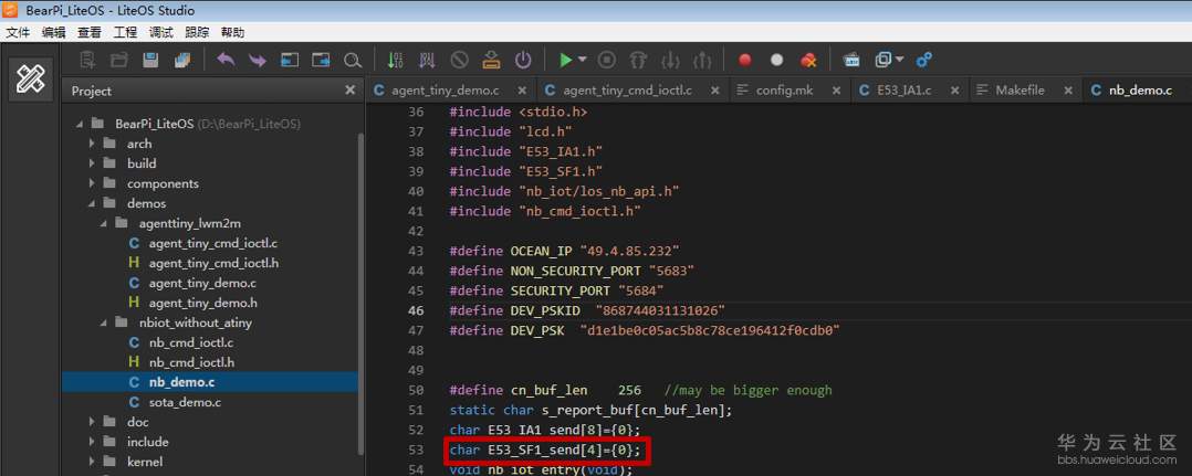 在“nb_demo.c”文件中,添加烟感数据发送数组定义;