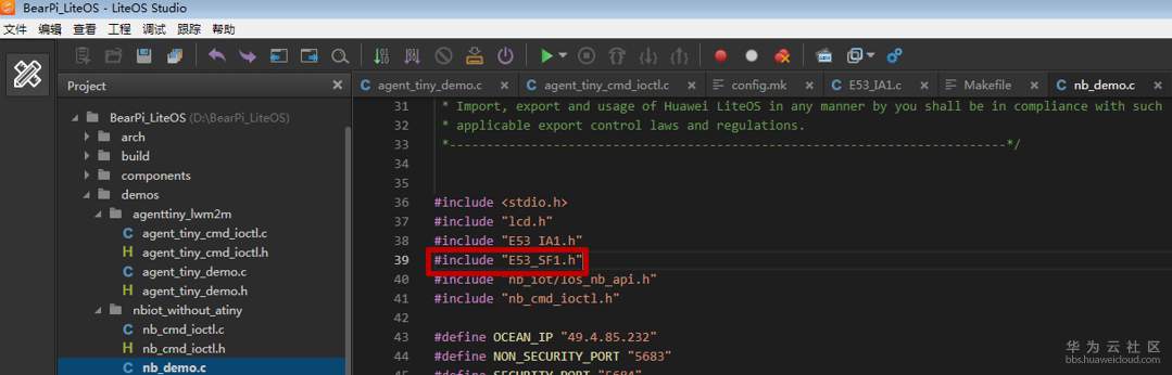 在“nb_demo.c”文件中,添加智慧烟感驱动的头文件;