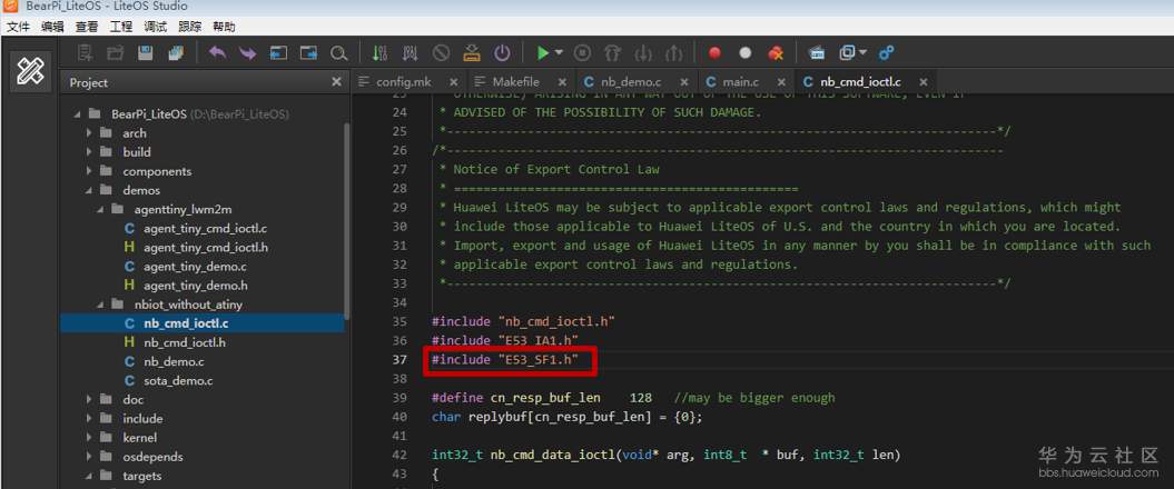 打开“nb_cmd_ioctl.c”文件,在“nb_cmd_ioctl.c”中添加智慧烟感传感器驱动头文件;