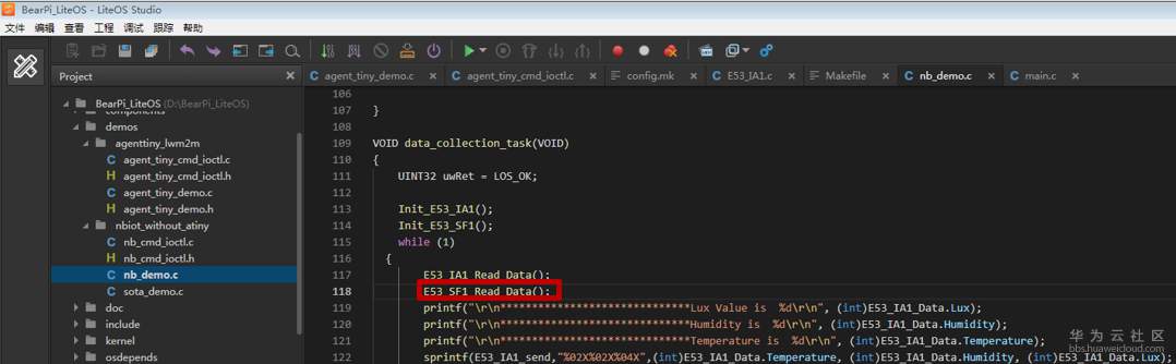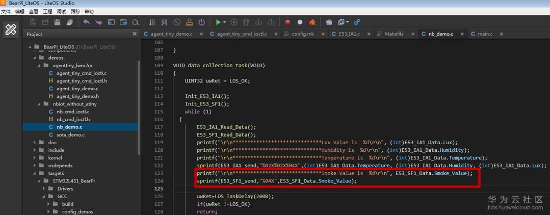 在“nb_demo.c”的数据收集任务中,添加读取烟感传感器数据的代码;
