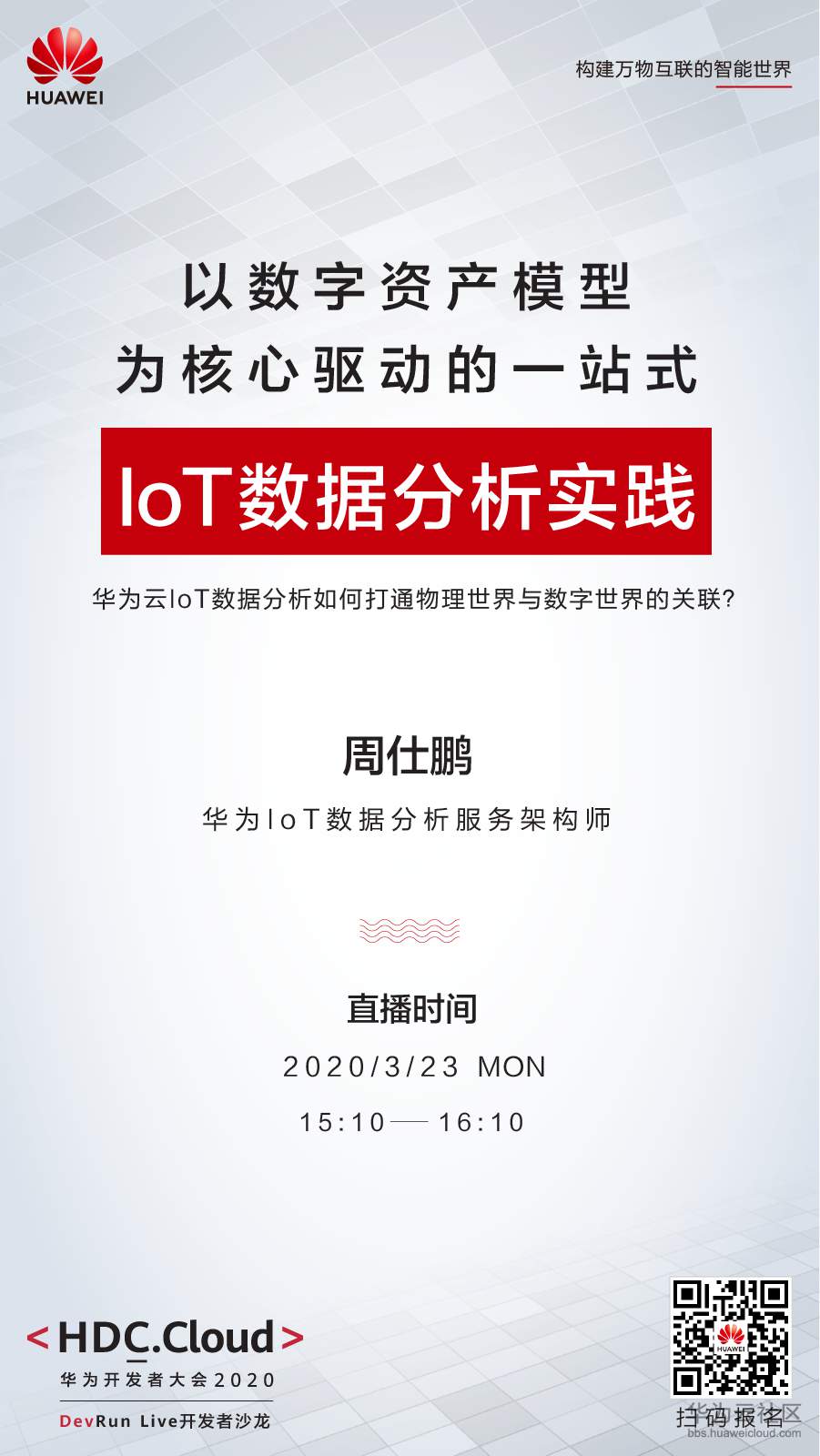 在3月23日第五期的华为DevRun Live开发者沙龙中,华为云IoT数据分析服务架构师周仕鹏将和大家一起分享《以数字资产模型为核心驱动的一站式IoT数据分析实践》,揭开物理世界与数字世界关联、以及华为云IoT数据分析如何高效的构建物联网数据分析解决方案的奥秘。
