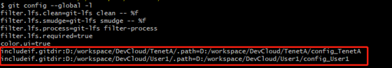 [includeIf "gitdir:D:/workspace/DevCloud/TenetA/"]