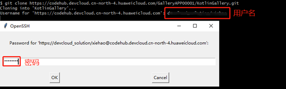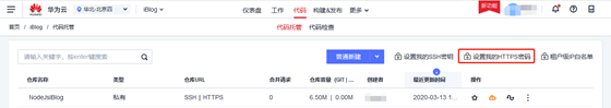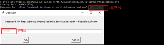 用户名与密码从DevCloud的CodeHub中获取,如下图所示: