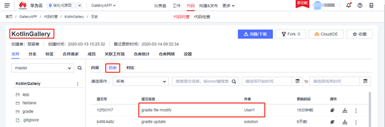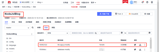 方式二:进入华为云DevCloud的CodeHub的相应仓库进行查看,如下图所示