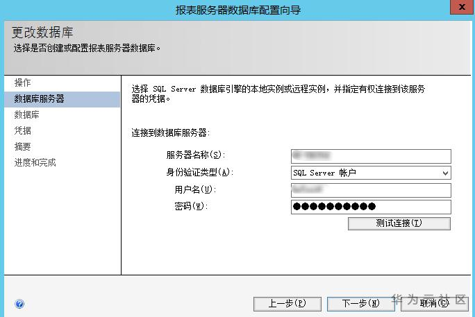 iii 完善远程RDS SQL Server实例连接信息。服务器名称请填写RDS SQL Server的地址,账号请填写“rdsuser"。单击“测试连接”,测试连接通过后单击“下一步”