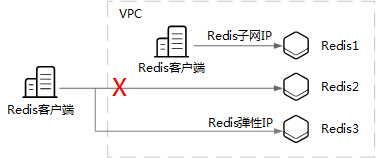 DCS Redis实例运行在VPC(虚拟私有云)内,客户端程序与Redis实例使用VPC内子网地址通信,网络低延时高IO,且安全防护性更高。如果本地开发/测试环境想要访问Redis实例,则可以为实例绑定弹性IP,客户端程序通过弹性IP与实例通信。