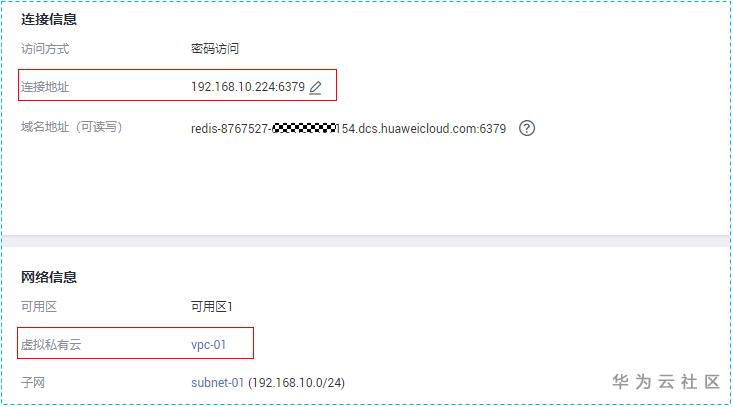 如下所示,小编的Redis实例,在虚拟私有云“vpc-01”内。
