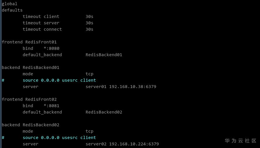 Haproxy安装后,需要配置请求转发规则,告诉Haproxy哪个端口收到的请求,应该转发到后端哪个Redis示例。