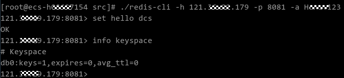 小编在公网环境中打开Redis命令行界面,输入如下命令,登录与查询都正常,大功告成。