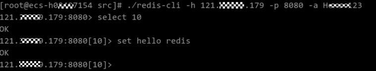 注意,命令中的{myeip}为主机连接地址,需要填写ECS的弹性IP,端口需要填写ECS上Haproxy的监听端口。如下图所示,小编设置的2个监听端口分别为8080和8081,对应后端2个Redis实例。