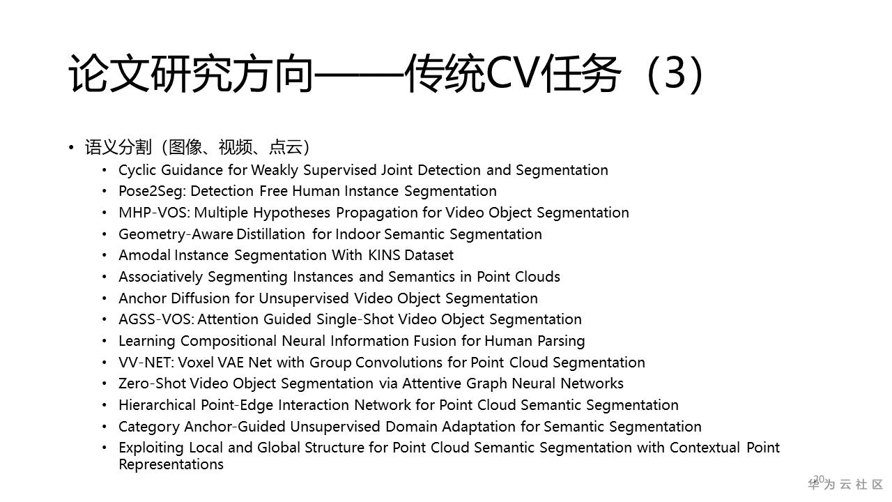 此外,在传统的CV研究内容中,腾讯也有不少产出,从论文的数量来看,这些传统的CV研究内容仍然有不少尚待解决的问题,具体的研究内容和文章列表如下。