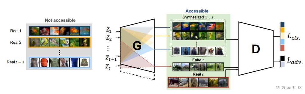 目前主流地增量学习算法可以分为两类:(1)基于GAN的方法。这类方法不保存旧类别的样本,但是会使用生成对抗网络(GAN),学习生成每类的样本。因此,在对模型进行更新的时候,只要使用GAN随机生成一些图像即可,无需保存大量的样本;(2)基于代表性样本的方法。这类方法对于每个旧类别,保存一定数量的代表性样本,在训练的时候,使用旧类别的代表性样本和新类别的样本来更新模型,从而保证模型既能准确地识别旧类别,也能准确地识别新类别。下面针对这两类方法,分别简单介绍一些发表在CVPR 2019上的论文,并简单总结一下这两类方法各自的优势和不足。