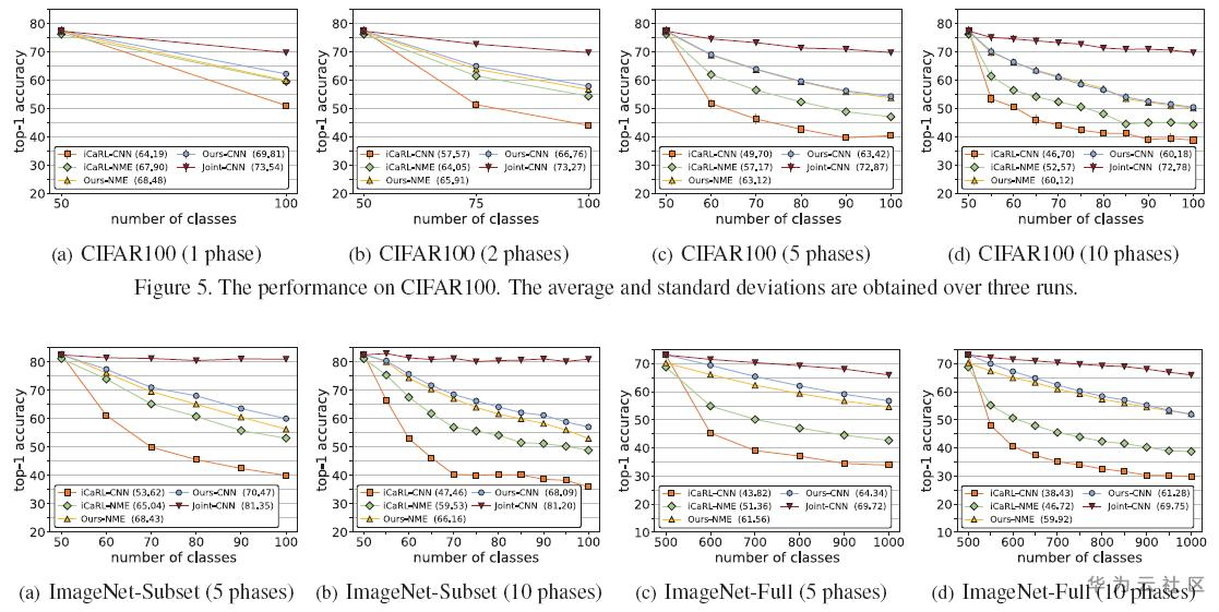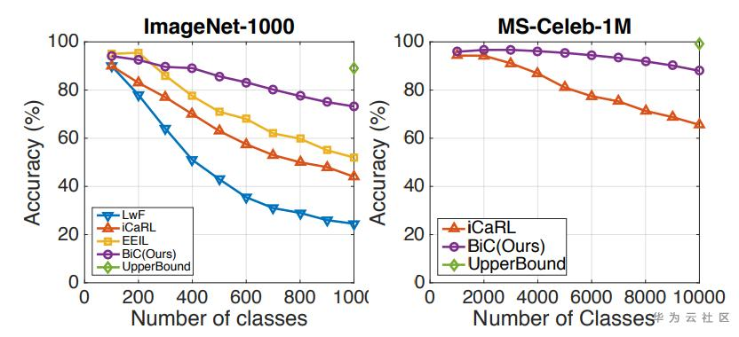 实验结果显示,该方法相比于经典的iCaRL增量学习算法,有十个点以上的提升,如下图所示。